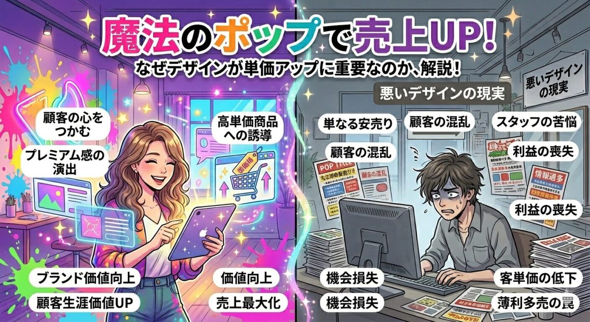 | 比較項目 | 失敗するポップ(ただの値札) | 魔法のポップ(教えるツール) |